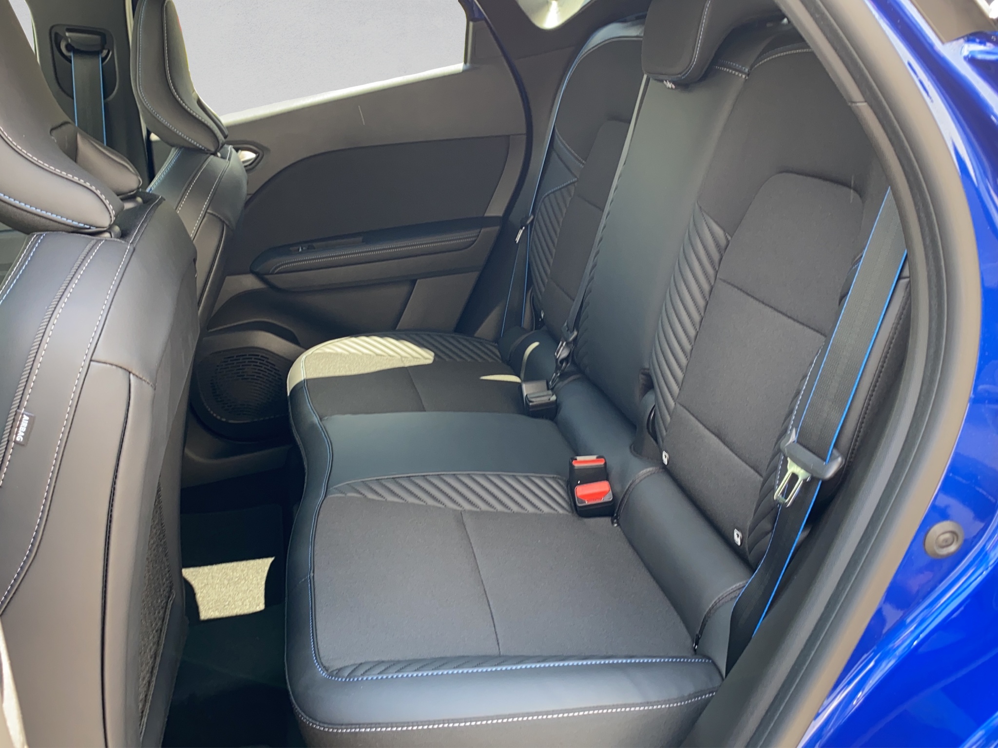 Tissu: Housse de siège Madama en simili cuir avec surpiqûres bleues