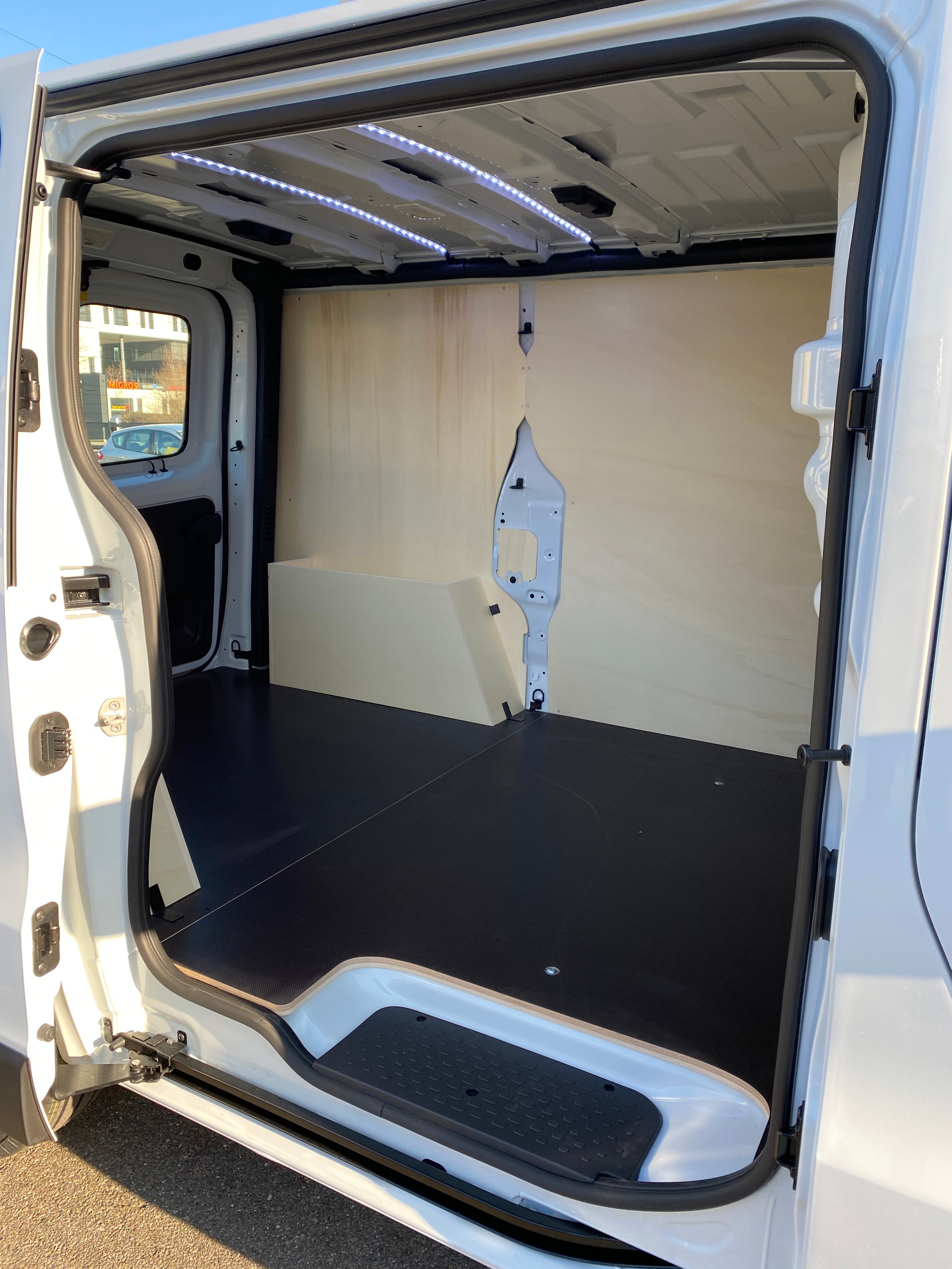 Plancher bois dans lespace de chargement avec revêtement PVC (12 mm)