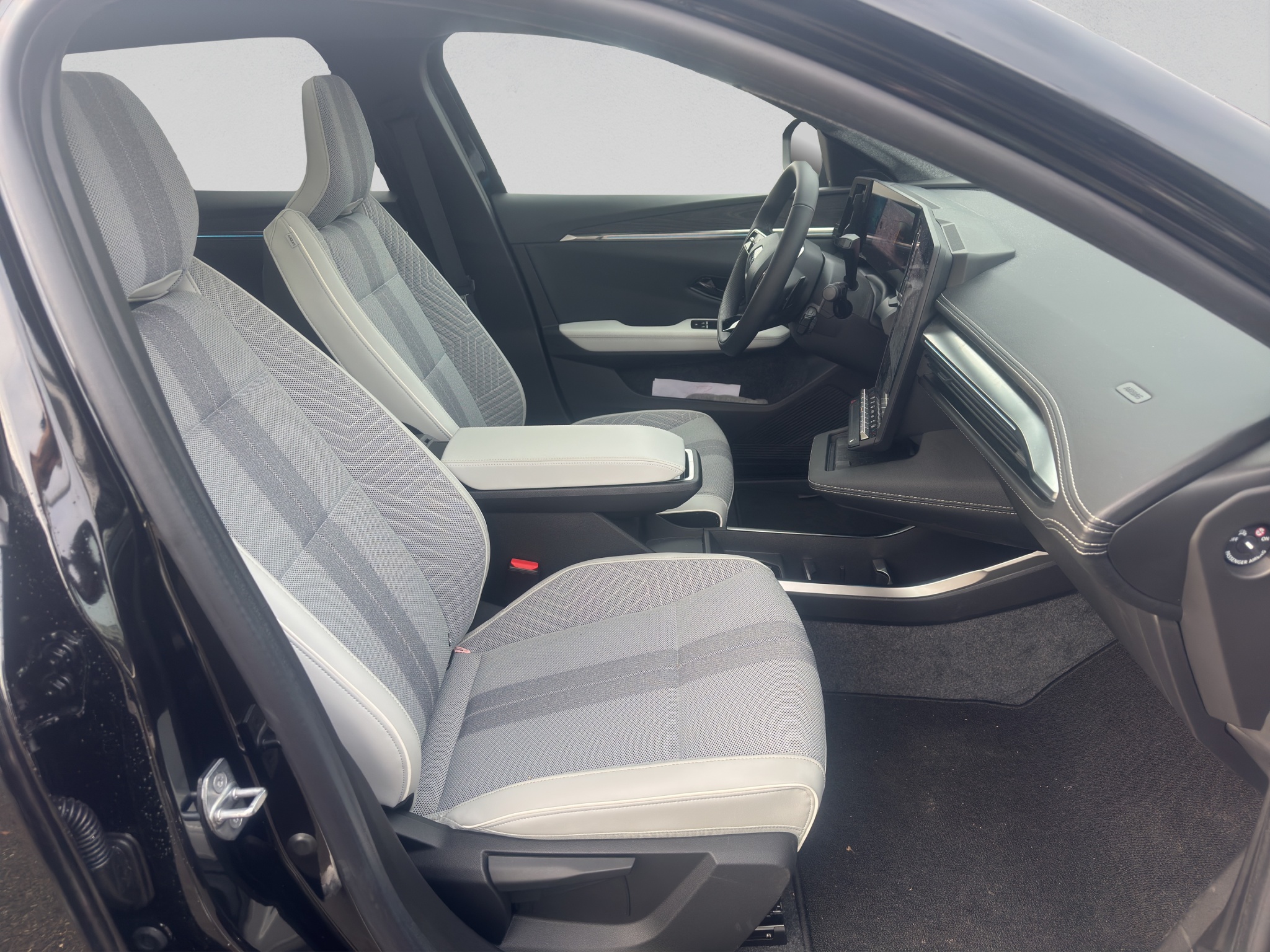 Tissu: Housse de siège en tissu gris clair avec surpiqûres dorées