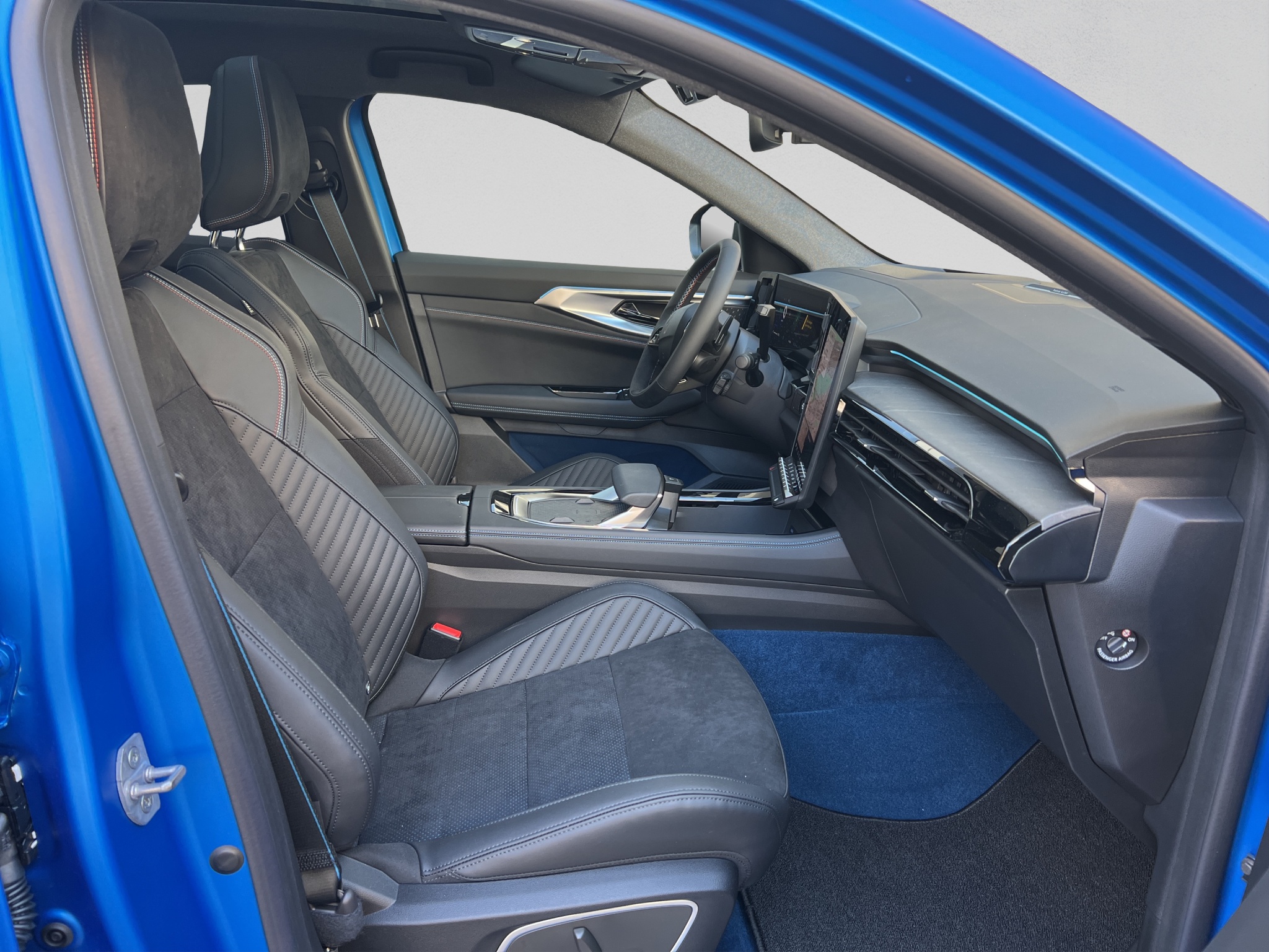 Tissu: Sellerie tissu/simili cuir avec coutures bleues