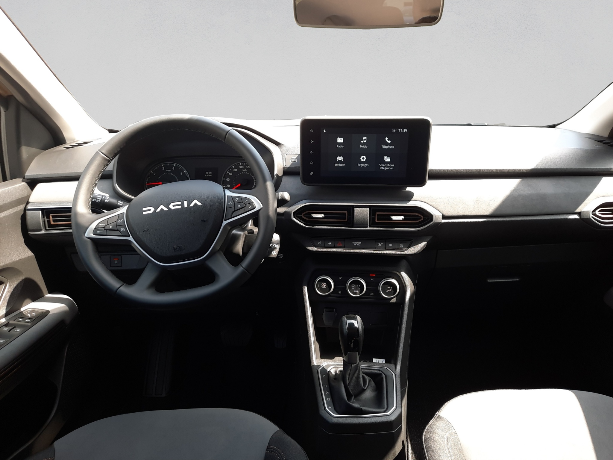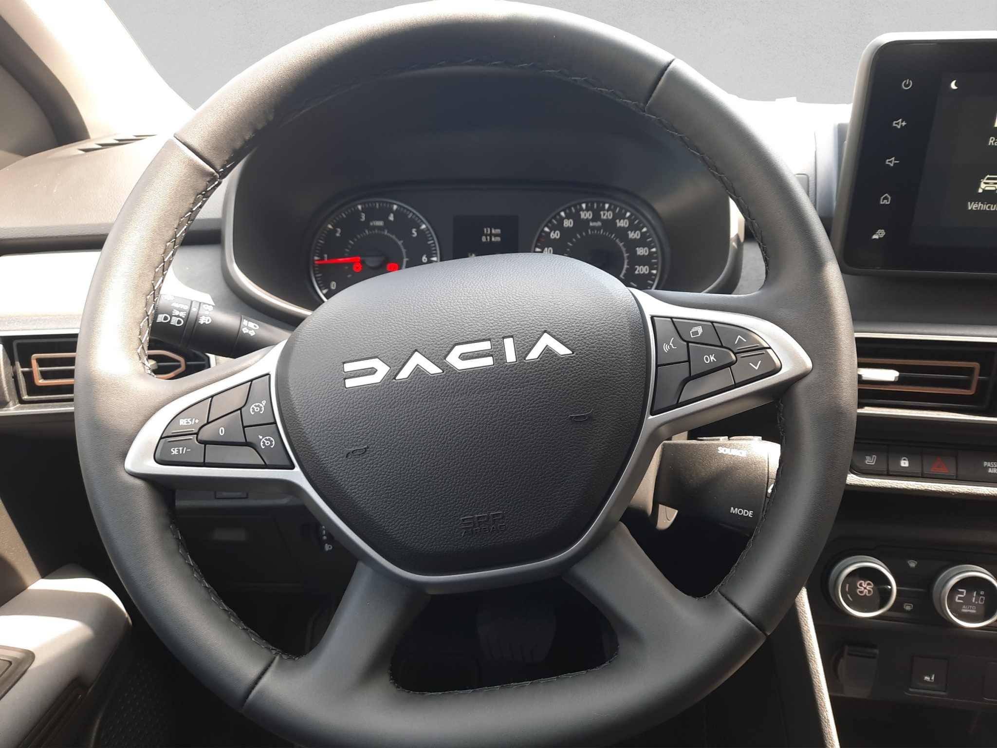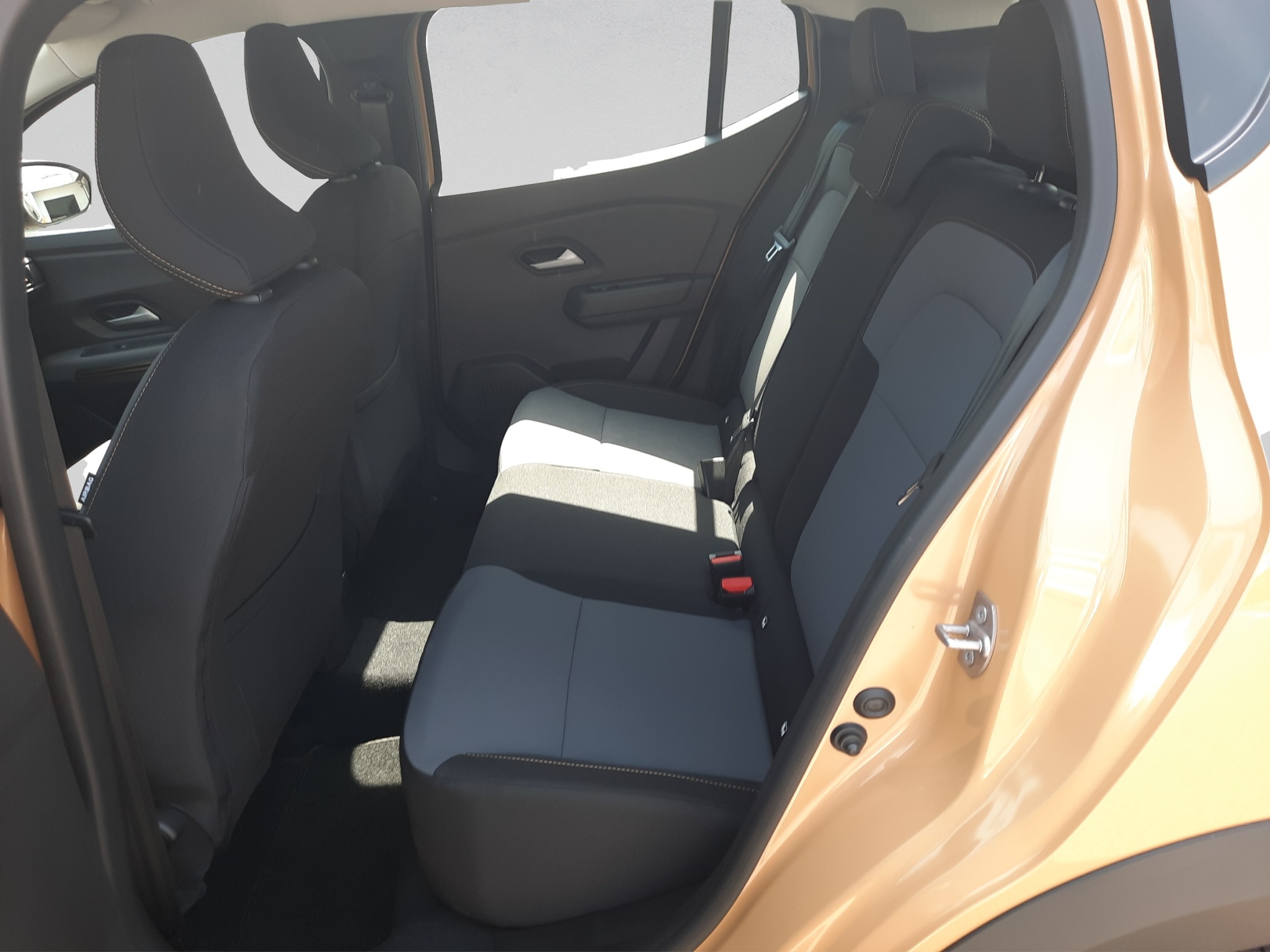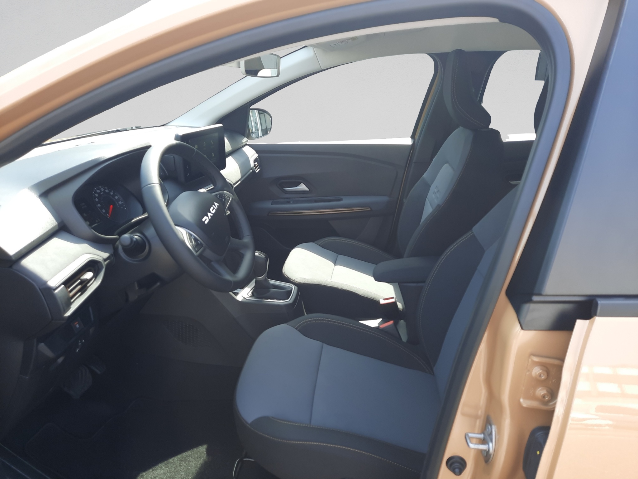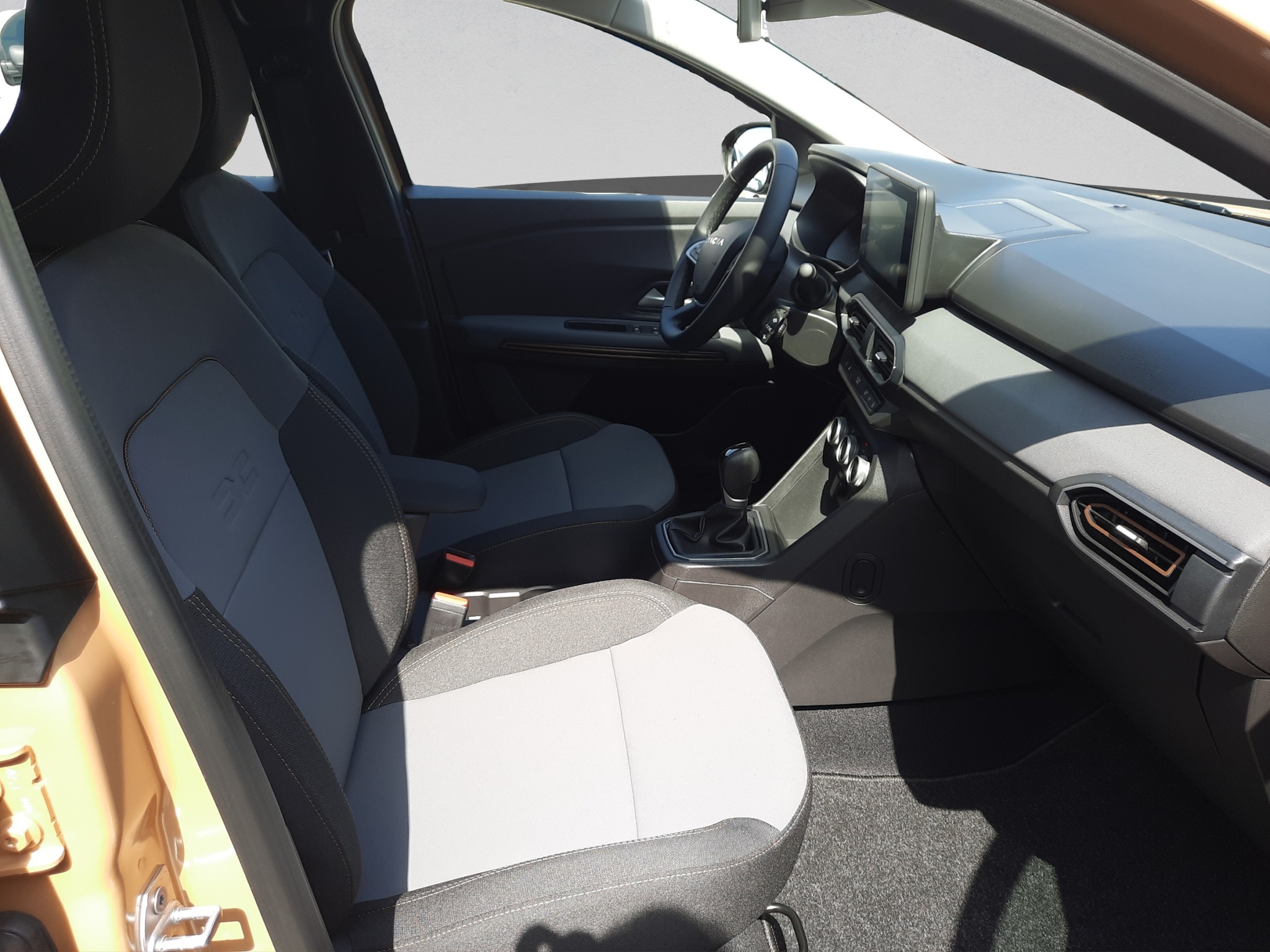 Tissu: Tissu gris micro-cloud avec surpiqûres spécifiques en brun cuivre et gaufrage logo Dacia