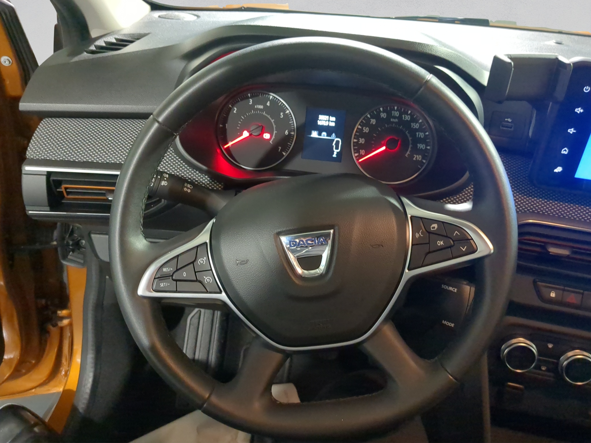 Décor: Insertion décorative en tissu orange sur le tableau de bord et