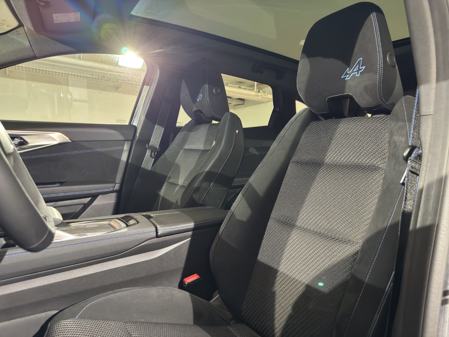 Tissu: Sellerie tissu/alcantara foncé avec coutures bleues