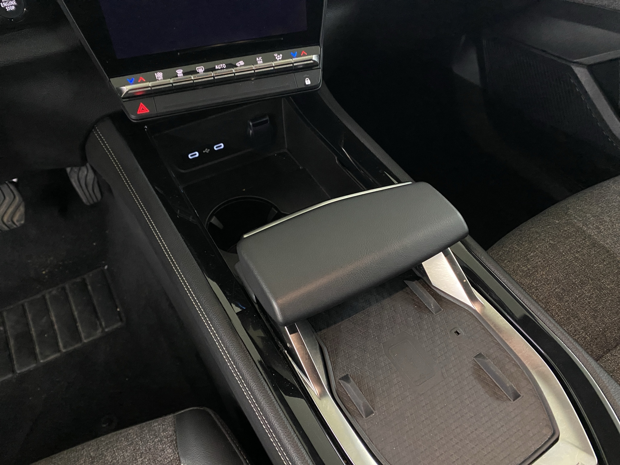 Console centrale avec compartiment de rangement et accoudoir central